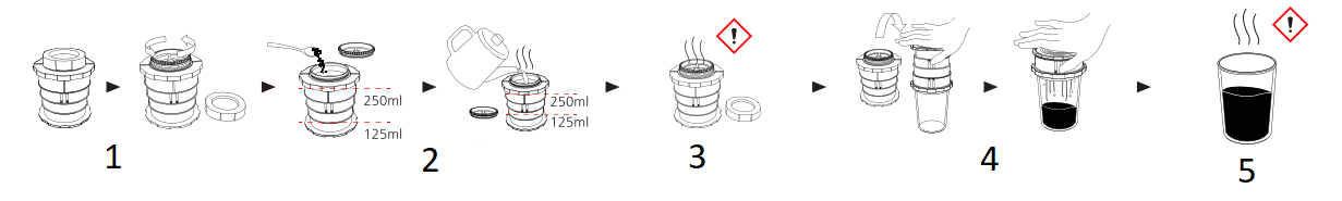 * Бъдете внимателни, тъй като свареното кафе може да се разлее, докато обръщате Cafflano Kompact за екстракция.