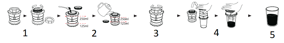 - Затворете микрофилтъра и оставете да се запари (1-3 минути според вкуса).