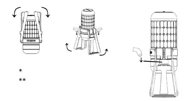 ** За съхранение: Издърпайте надолу подвижния превключвател, за да освободите двете скоби, и след това просто ги сгънете нагоре.