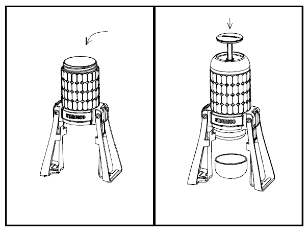 - Завъртете и освободете капака на помпата и започнете да изпомпвате. За да получите най-добър резултат от екстракцията, опитайте да изпомпвате на всеки две секунди. Ще усетите, че налягането започва да намалява, когато водата е използвана, на този етап спрете изпомпването. Вашето кафе вече е готово... Насладете се!