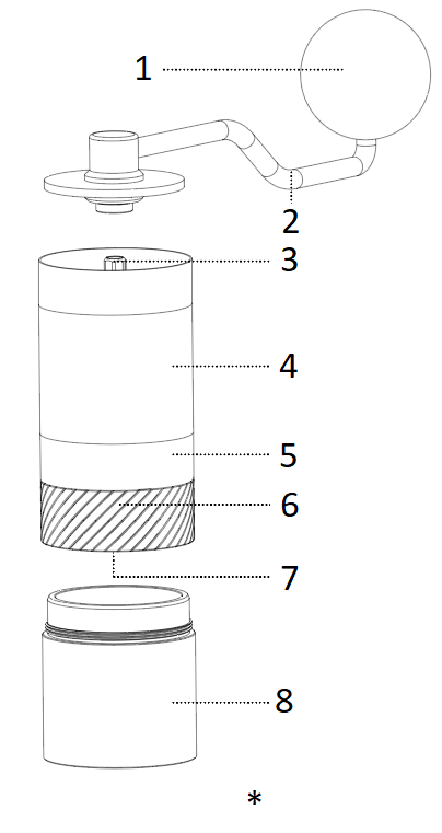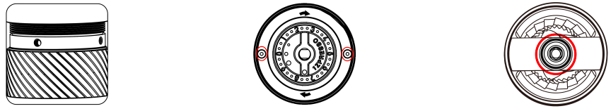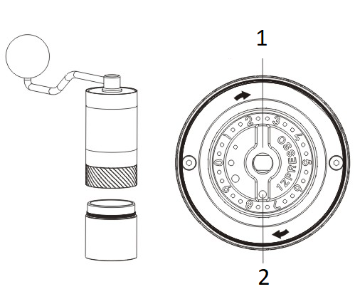 Всички 1Zpresso мелнички могат да се разглобяват без никакви инструменти. Монтирайте и поставете добре манивелата, спрете въртенето ѝ и я разхлабете завъртете регулиращия диск обратно на часовниковата стрелка, за да го свалите. |