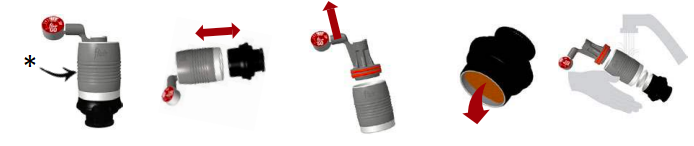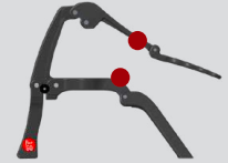 Вашият Flair 2GO има множество опорни точки и контакти точки, когато са напълно сгънати. Моля, имайте предвид, че По време на употреба, вашият Flair 2GO ще покаже известно износване в тези контактни точки, обозначено с червените точки по-долу. Виждаме това като почетен знак за добре изминат живот с чудесно еспресо! |  |