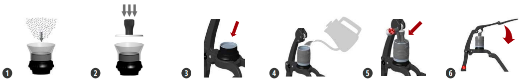 Следвайте стъпките по-долу. Почистването на вашия Flair 2GO трябва да се извършва само с вода. Не е необходим сапун, тъй като може да повлияе на вкуса на еспресото. Никога не поставяйте частите на вашия GO в съдомиялна машина.