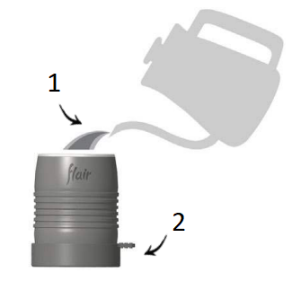 Вашият Flair 2GO не изисква предварително загряване, за да се получи добро извличане на еспресо. Но ако приготвяте леко изпечено кафе или искате допълнително горещо кафе, можете да загреете предварително цилиндъра. Препоръчваме два метода. - Поставете цилиндъра изправен в купа или мивка и го напълнете с преварена вода. Оставете за 30 секунди. Внимателно го извадете.