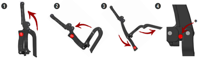 4. Освободете с натискане на червения бутон - Освободете ключалката с натискане на червения бутон, след което изпълнете стъпките в обратен ред, за да сгънете вашия Flair 2GO.