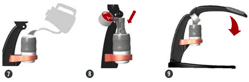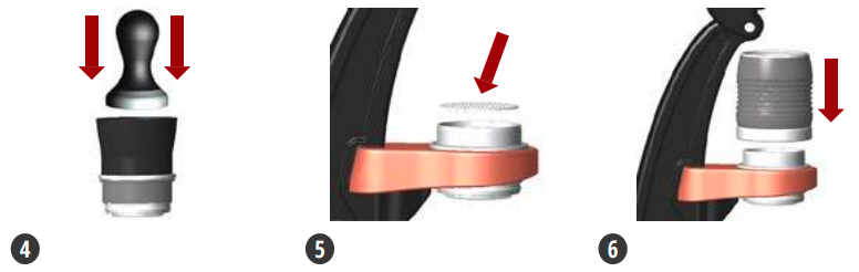 6. Добавете цилиндъра за приготвяне на кафе към Portafilter - Притиснете цилиндъра към портафилтъра. Не е необходимо предварително загряване.