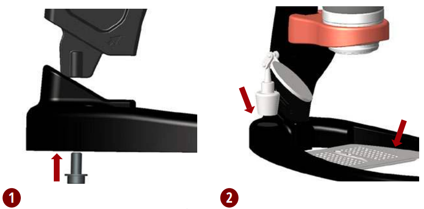 - Добавете огледалото си за шотове към кръглата магнитна монета от лявата страна на основата. Поставете вашия Stainless Steel Drip Tray в основата... и сте готови!
